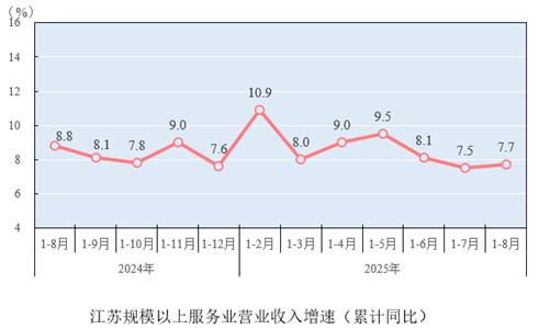 1—8月,全省规模以上服务业营业收入同比增长7.7%,列统的10个行业门类中,8个行业营业收入实现正增长;其中租赁和商务服务业,水利、环境和公共设施管理业,居民服务、修理和其他服务业3个行业门类实现两位数增长。