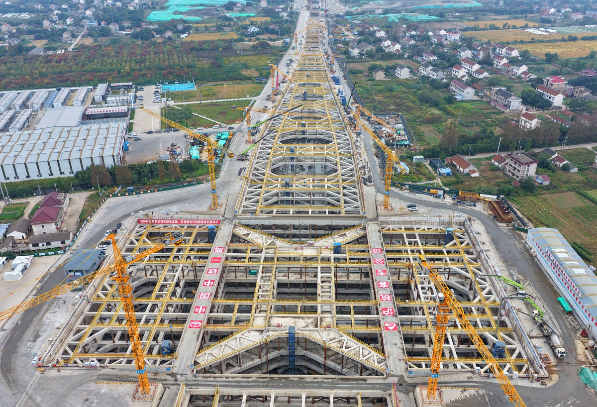 值得一提的是,该站采用两台六线站场布局,地下一层为换乘通道,地下二层为高铁站台,地下三层预留城际轨道,北侧衔接规划中的南通新机场。未来,这里将打造为集高铁、航空、城轨、地铁、公交、出租车等多种交通方式于一体的大型综合交通枢纽。许丛军 摄
