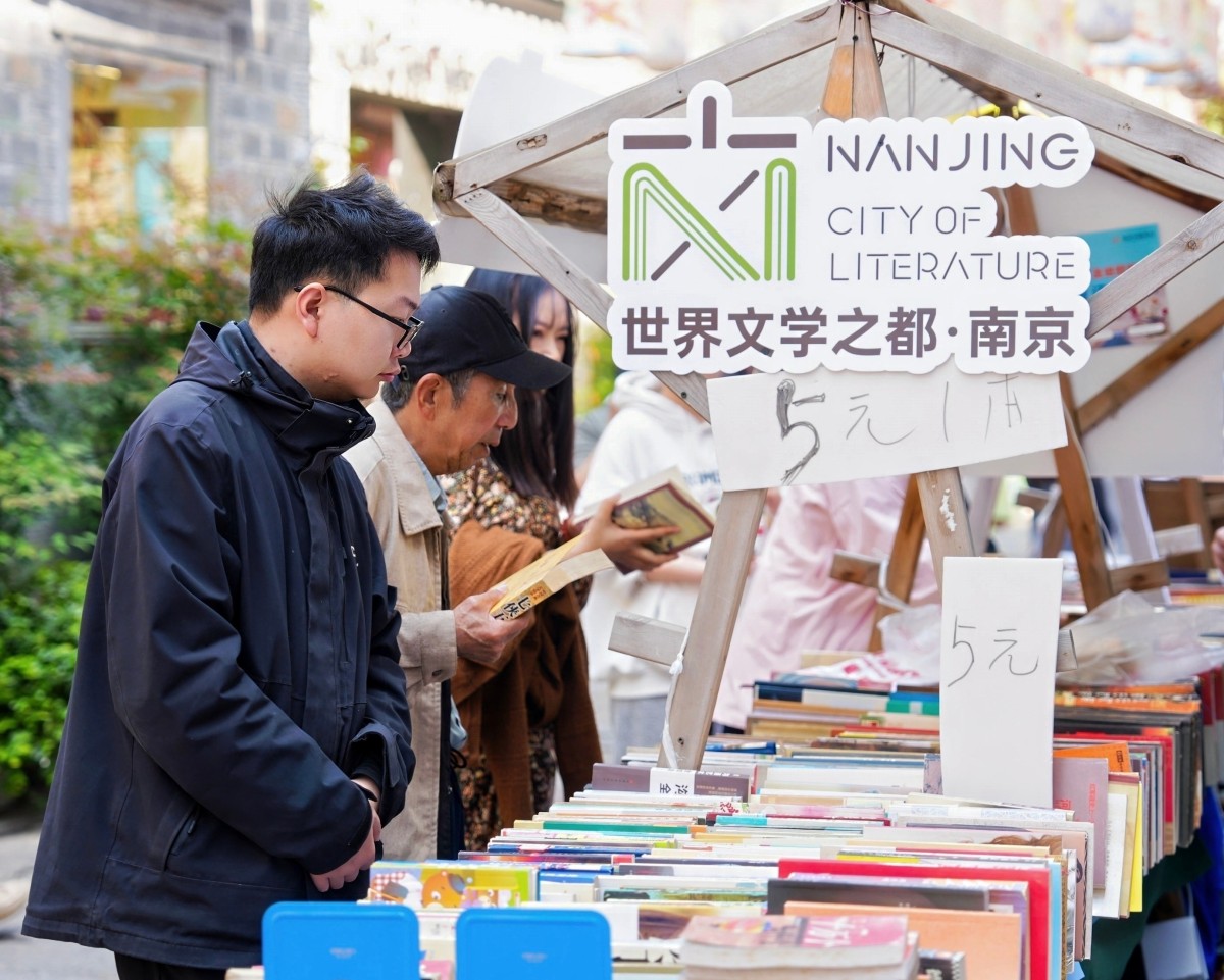 4月19日,市民在南京读书月启动活动现场挑选图书。赵亚玲 摄