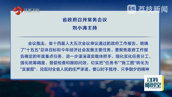 2月9日下午,省政府召开常务会议,深入学习贯彻党的二十届四中全会和习近平总书记对江苏工作重要讲话精神,全面落实省委十四届十次全会、省委经济工作会议和省两会部署要求,审议《关于落实〈政府工作报告〉2026年重点工作分工方案》等文件,研究安排当前重点工作。查看全文 >