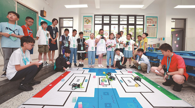7月2日,第五届南通市青少年人工智能创新大赛在南通市经济技术开发区实验小学教育集团星湖校区顺利举办。全市1000多名选手在智能控制工程赛、无人机应用接力挑战赛、机甲格斗挑战赛、机器人工程创想挑战赛等赛项中切磋技能、交流经验。钱咸华 摄