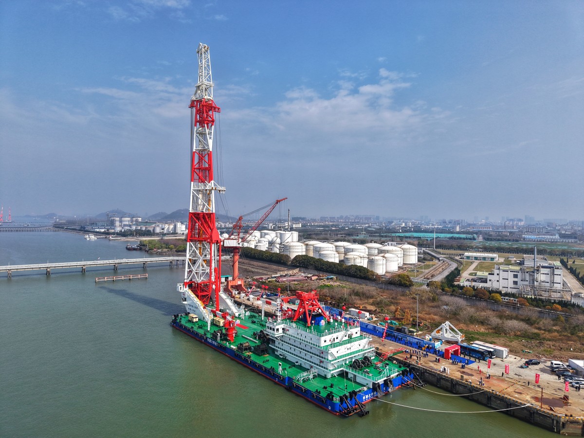 全球最大打桩船“铁建大桥桩1”号在南通正式交付。王诗宇 曹凯琪 摄